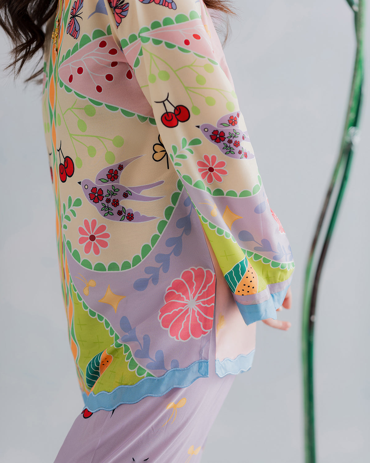 • Trousers Fabric: Matching silk fabric to create a chic and coordinated look.